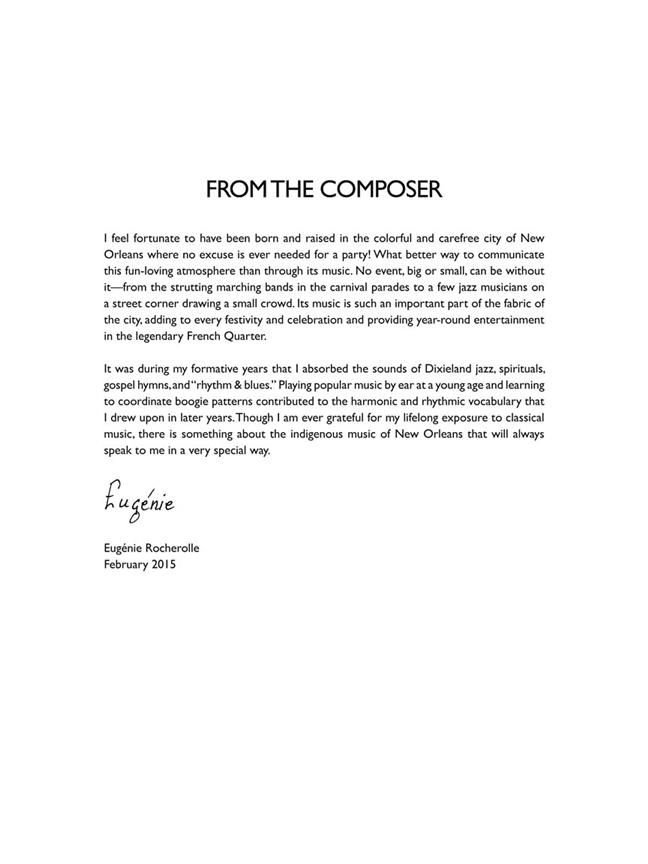 As a native of New Orleans, Eugenie Rocherolle grew up immersed in the unique musical sounds of this beautiful historic city, also known as the Big Easy. As a result, each piano solo in this collection evokes an elegant, nostalgic charm.