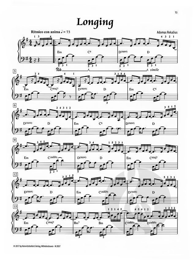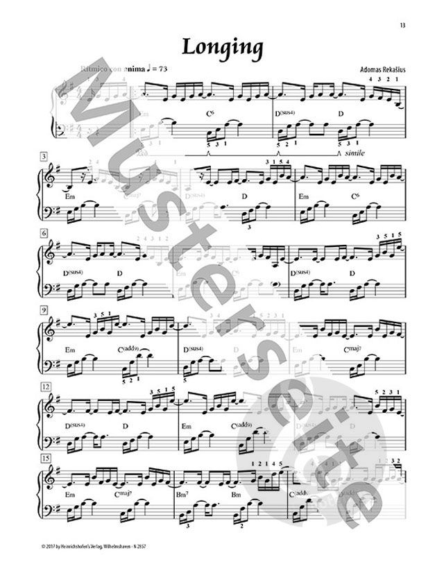 Wie spielt man Pop-Musik am Klavier? Wie unterscheidet sie sich von klassischer oder Jazzmusik? Was ist in dieser Musik wichtig? Mit diesen Fragen hat sich Adomas Rekasius schon in den 'Little Stores für Pop-Piano' (HH2809) auseinandergesetzt. Sein neues Album 'New Stories for Pop-Piano' umfasst 12 neue Pop-Songs, die anspruchsvoller und noch abwechslungsreicher sind, aber genauso gut in den Händen liegen wie die ersten Klavierwerke.
