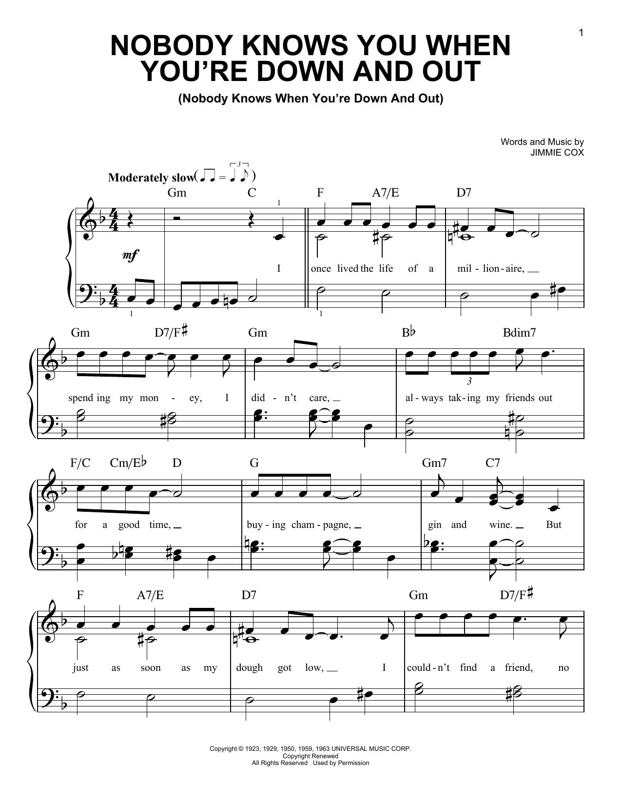 Nobody Knows You When You're Down And Out