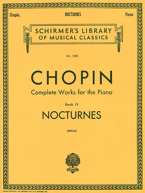 Contents: 3 Nocturnes, Op. 9 - 3 Nocturnes, Op. 15 - 2 Nocturnes, Op. 27 - 2 Nocturnes, Op. 32 - 2 Nocturnes Op. 37 - 2 Nocturnes, Op. 48 - 2 Nocturnes, Op. 55 - 2 Nocturnes, Op. 62 - Nocturne in E minor, Op. 72, No. 1