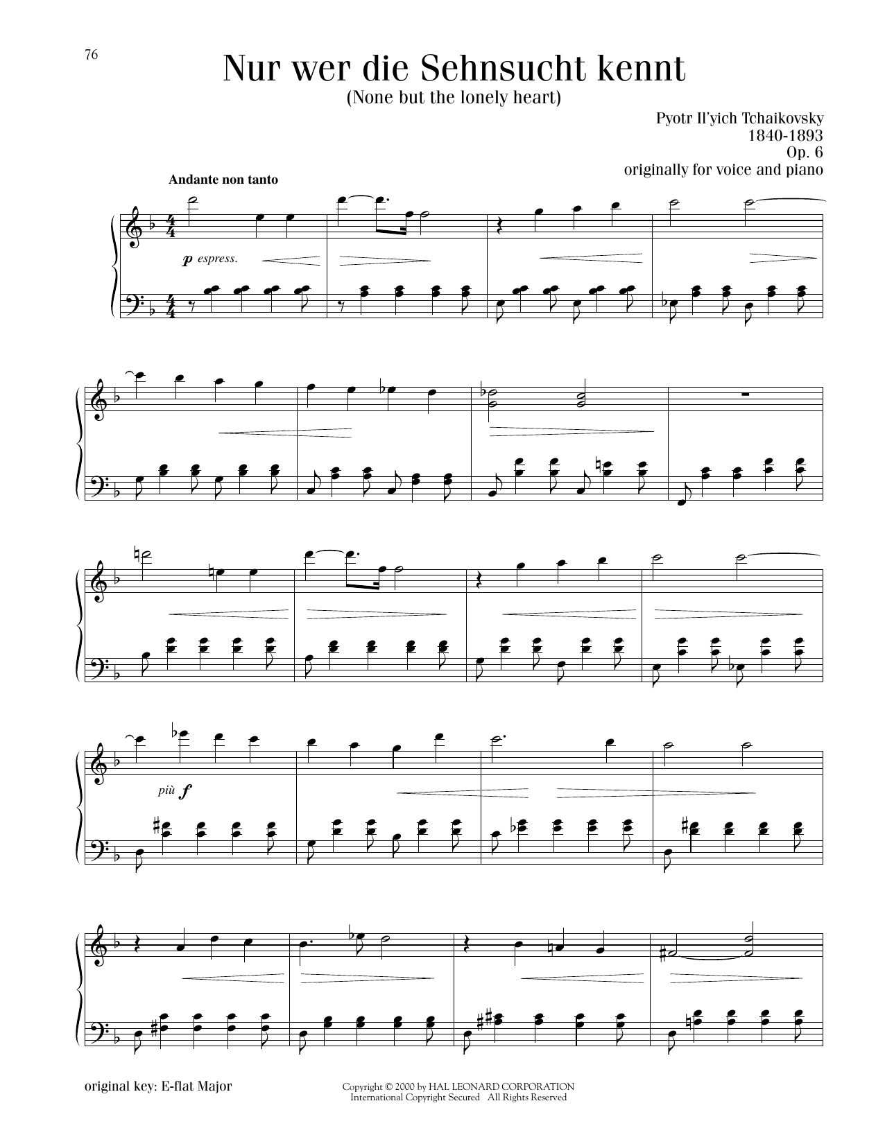 (Nur Wer Die Sehnsucht Kennt), Op. 6