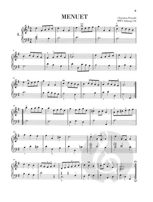 Bach schenkte seiner Ehefrau Anna Magdalena zwei handgeschriebene Notenhefte. Das zweite davon war besonders wertvoll, mit einem pergamentüberzogenen Einband mit Goldschnitt versehen. In dieses Büchlein von 1725 notierte er zahlreiche Klavierstücke in den verschiedensten Stilen - eigene und solche von anderen Komponisten. Die Henle-Urtextausgabe, die übrigens zu den alljährlich am meisten verkauften Titeln unseres Katalogs zählt, gibt den gesamten Inhalt dieser Handschrift notengetreu und hervorragend von Hand gestochen wieder, ausgenommen die im Notenbüchlein enthaltenen Sätze aus den 'Französischen Suiten' (HN593) und 'Partiten' (HN28), die man im Henle-Katalog bekanntlich an anderer Stelle findet.