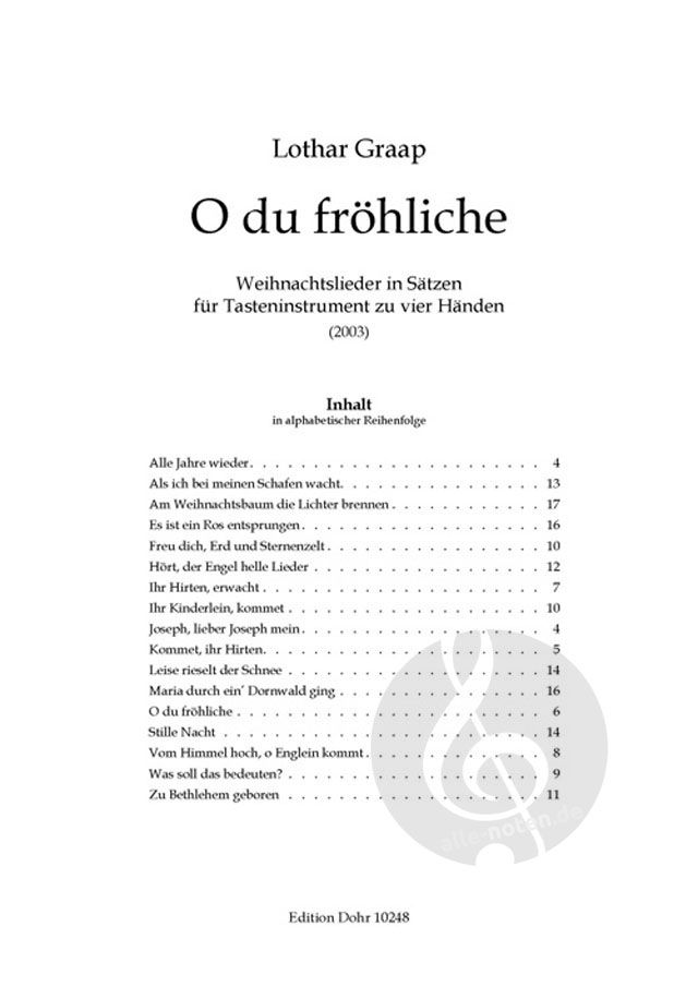 Weihnachtslieder in Sätzen für Tasteninstrument zu vier Händen.