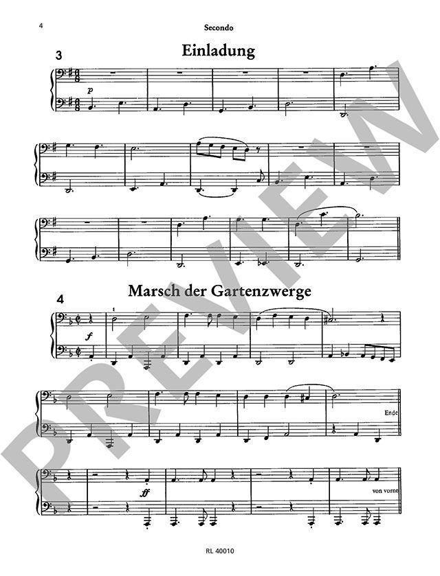 Das Besondere an diesem Heft ist, dass beide Parts leicht zu spielen sind. Die Melodien im Primo-Part (meistens für beide Hände gleich) überschreiten nur selten den Quintraum und sind nicht nur für das Ohr, sondern auch für die Finger leicht 'begreifbar'. Die Stücke stellen auch eine gute Übung im Prima-Vista-Spiel dar, vor allem im Secondo-Part, der auch von fortgeschrittenen Schülern oft schwerer gelesen wird als der Primo-Part.