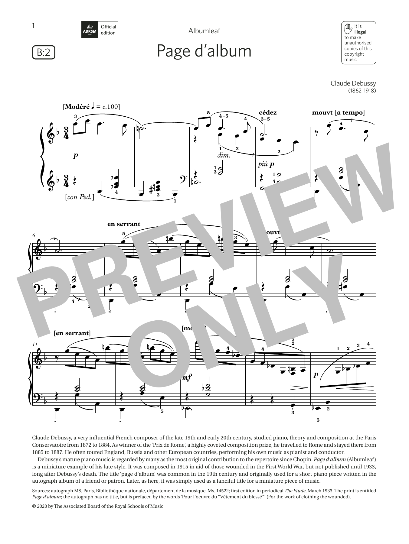 Page d'album (Grade 6, list B2, from the ABRSM Piano Syllabus 2021 & 2022)