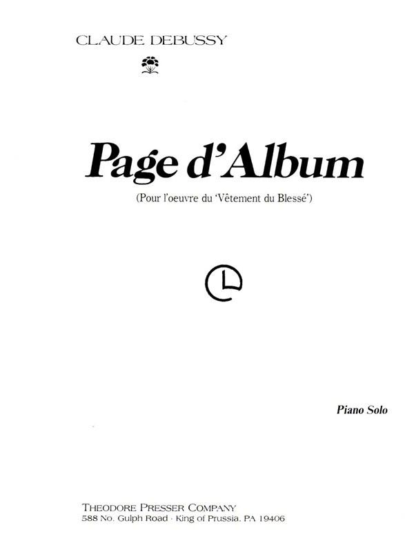 A brief waltz for piano written in 1915 on the request of a war relief organization; 'Le Vtement du Blessé'(' The Dressing of the Wounded'); Which was to be used in a fund raising auction. Although originally published in an edition by Maurice Dumesnil (who supplied the title) in 1933 by the Theodore Presser Company; this new edition by Roy Howat restores the text of the original manuscript; adding only necessary editorial indications. For studios; schools; colleges; professional. Easy.