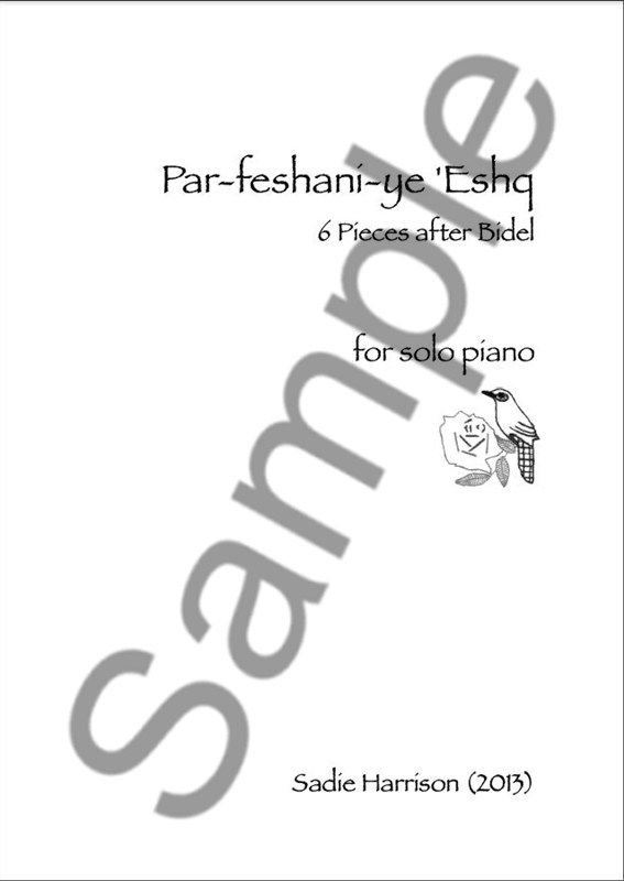 The title Par-feshani-ye 'Eshq translates, in English, to The Fluttering Wings Of Love and was taken from a text by the 18th century Sufi poet Bidel. Each brief movement takes a couplet from the poem as inspiration, drawing on an extraordinary array of images of clay pots on waterwheels, a nightingale's fluttering wings, weighty fetters links and the world's garden roses. The work is dedicated to friends Renée Reznek and Bruce Wannell. Bruce introduced Harrison to the poetry of Bidel and Renée had the privilege of performing the piece on its premiere performance. Australian born freelance composer and performer Sadie Harrison 's unique fusion of elements from indigenous Lithuanian music and poetry with her own modernist, often abrasive, style have led her to be compared with Bartok, but with her own warmth and grandeur. Since 2012 Harrison has been working alongside a long list of well accomplished musicians; Paul Carey, Peter Sheppard Skaerved, Sergej Okrushko, Alex South, Duncan Honeybourne are among many who have had the privilege work with Harrison so far. Performances of Harrison 's works have been given across the world by Lontano, London Chamber Symphony, Music Projects/ London, Ixion, Okeanos, Bournemouth Sinfonietta, Kokoro and the St. Christopherus Chamber Orchestra, and many others.