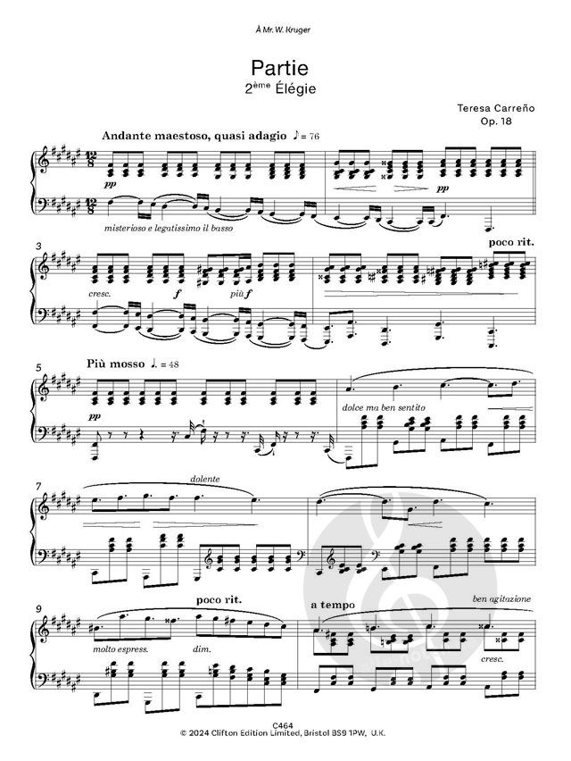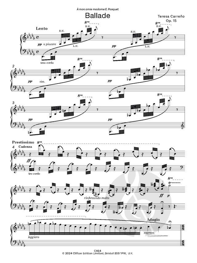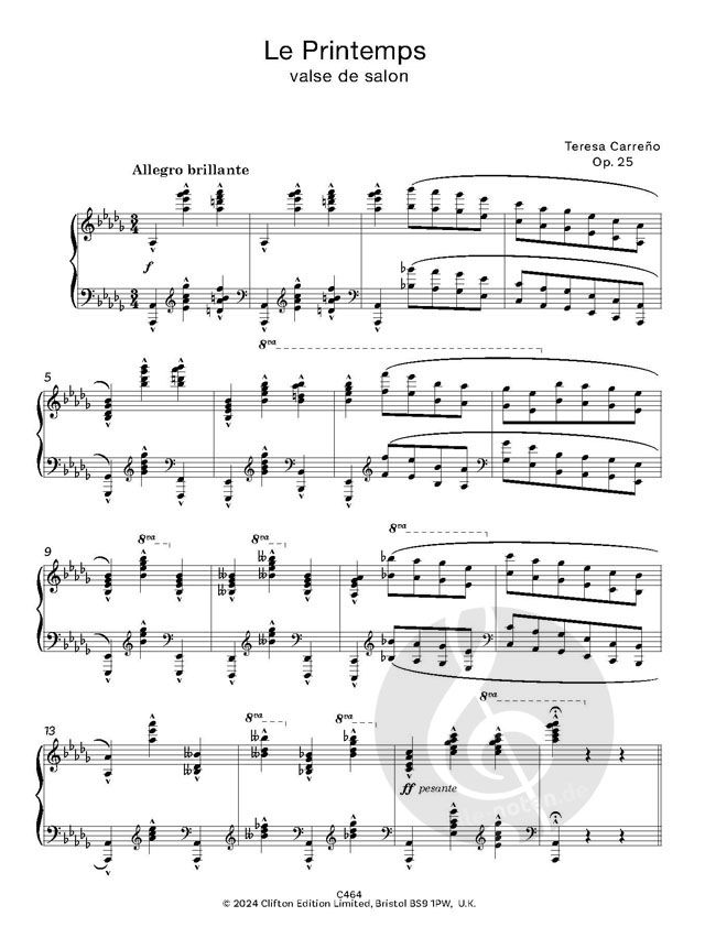 Carreños Stücke sind reizvoll, frisch und überragende sogenannte Salonstücke. Sie stellen viele technisch interessante Herausforderungen dar, sind aber auch äußerst lohnend dank der Qualität ihrer Komposition, die wunderschöne Melodien, eine intelligente Verwendung von Harmonien und die sonnige Freude an Rhythmen aus ihrer Heimat Venezuela umfasst.