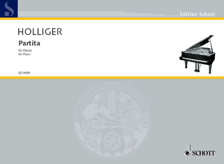 Heinz Holliger hat sich intensiv mit Friedrich Hölderlin und Robert Schumann beschäftigt. Dem dritten Satz seiner Partita, einer Barcarole, stellt er ein Motto voran: „Uns wiegen lassen, wie , Auf schwankem Kahne der See“. Diese Zeilen sind dem Hölderlingedicht „Mnemosyne“ (Gedächtnis) entnommen. Das Stück beginnt im Rhythmus der alten Gondellieder. Zeitweise verliert es aber den ihm eigenen stetigen Fluss der Musik und verfällt in Sprachähnlichkeit. Der vierte und sechste Satz sind mit „Sphynxen für Sch.“ überschrieben, was an die Bezeichnung „Sphinxes“ erinnert, die Schumann in seinem Carnaval für die Umsetzung seines Namens in Töne verwendete. Satz II „Fuga“ rekurriert auf Schumanns Fugen für Pedalflügel. Exakt in der Mitte erscheint die Chiffre BACH, eine Transposition aus Schumanns op. 60. Deutlich ist erkennbar, wie Holliger sich mit seiner Partita auf einen geschichtlichen Hintergrund bezieht, ihn vielfältig schichtet und gliedert. Komponiert für das Bachjahr 2000, hat Holliger hier in Form und Kabbalistik nicht allein dem Leipziger Thomaskantor seine Referenz erwiesen. Auch die so gegensätzlichen Bach-Anschauungen Schumanns und Liszts sind eingewoben. Ein gleichermaßen pianistisch wie musikalisch anspruchsvolles Konzertstück.