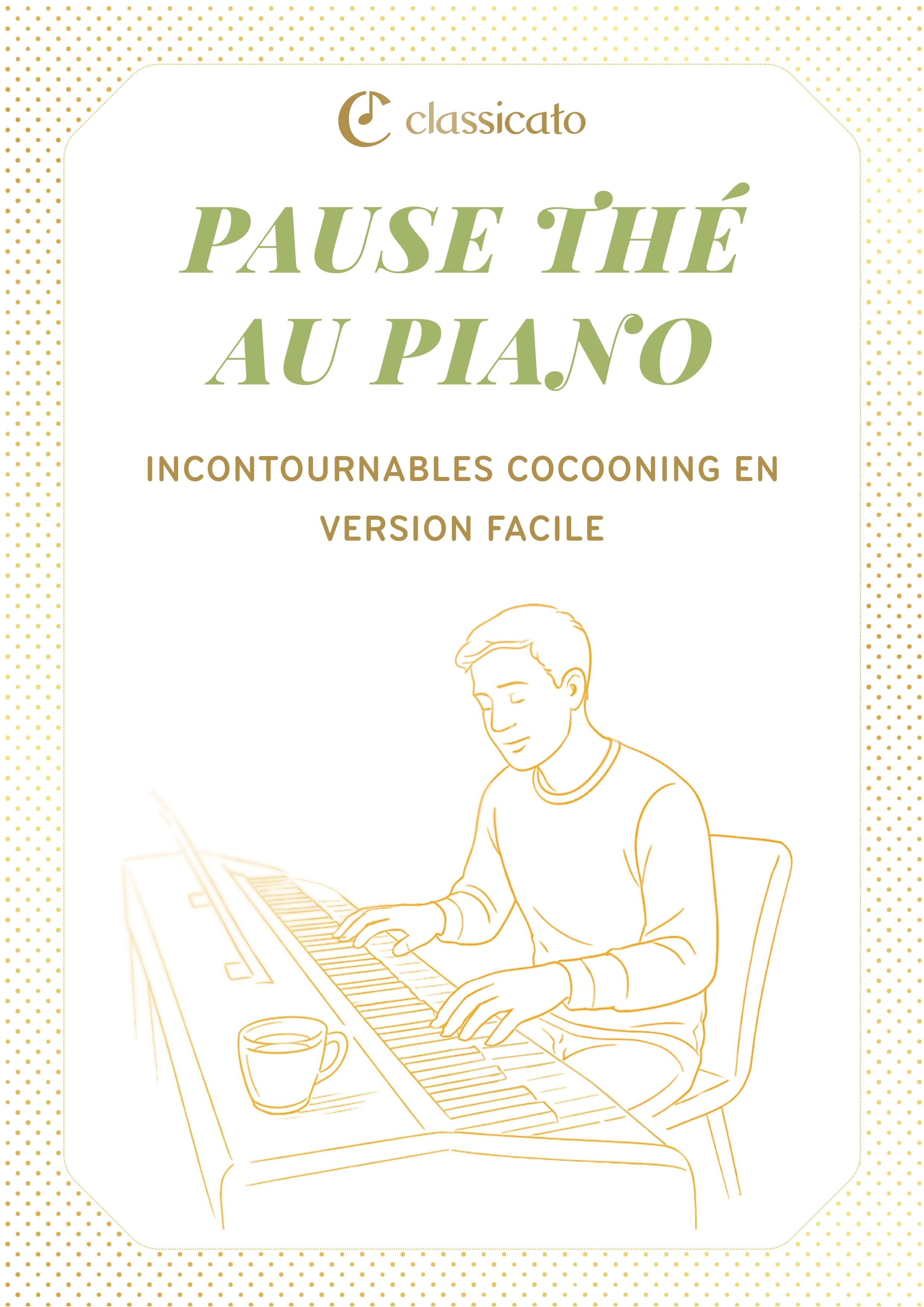 Parfois, il suffit d'une tasse de thé, de quelques minutes calmes et de sons doux pour respirer profondément et retrouver la sérénité. Cette collection transforme votre tabouret de piano en un véritable refuge: cinq chefs-d'œuvre méditatifs en versions simplifiées qui se jouent aisément à vue. Le tendre Chanson sans paroles de Mendelssohn, le nostalgique Rosemary de Bridge, le chaleureux Salut d'amour d'Elgar, le Nocturne doux comme clair de lune de Field et l'élégant Menuet de Purcell - chaque pièce est une petite parenthèse enchantée. Tantôt délicatement mélancolique, tantôt chaleureusement enveloppante, tantôt profondément apaisante. Atout unique: à chaque pièce correspond une recommandation de thé parfaitement assortie, qui sublime l'atmosphère et la musique. Choisissez votre thé, préparez-le, jouez, et de détente complet. Idéal pour les pianistes qui reprennent après une pause ou pour tous ceux qui souhaitent laisser le quotidien derrière eux.