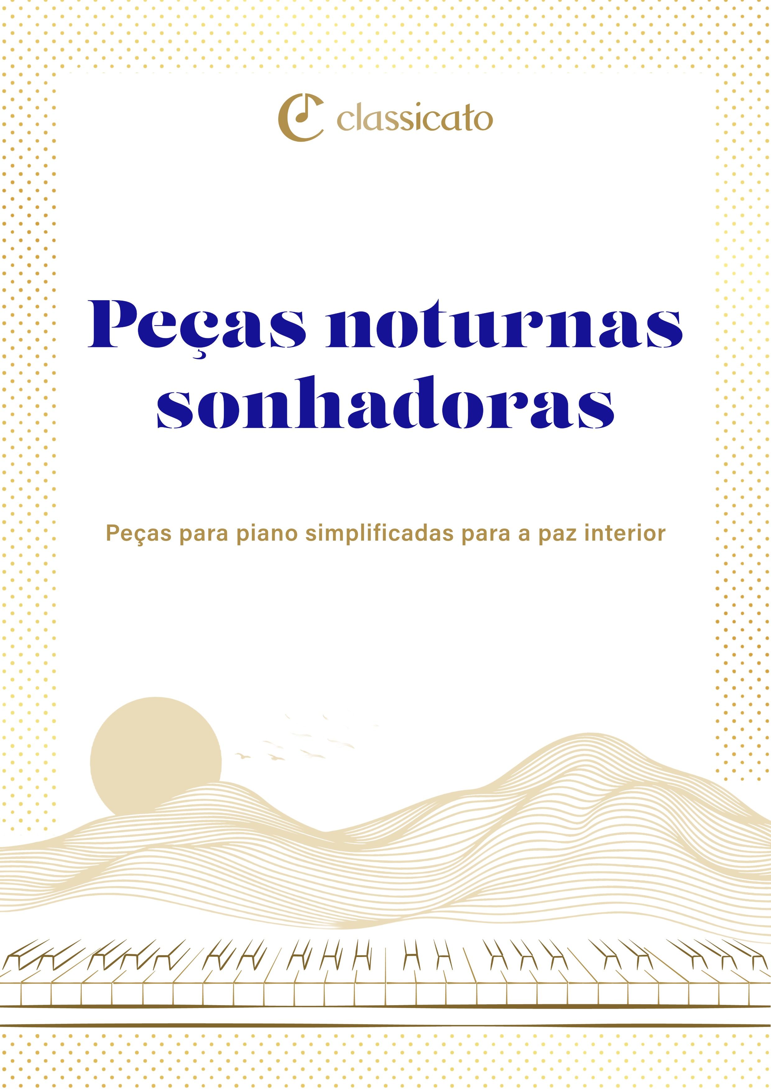 Algumas tardes, a alma não precisa de obras-primas exigentes - só de música que a acaricie como uma suave luz da lua. Esta coleção oferece exatamente isso: cinco das peças noturnas mais sonhadoras, cuidadosamente simplificadas para iniciantes avançados e quem retoma o piano. A Sonata ao Luar de Beethoven desliza suavemente na escuridão, o Noturno op. 9 n.º 2 de Chopin sussurra de saudade e ternura, Clair de lune de Debussy brilha como luz prateada sobre água quieta, a Canção de Embalar de Brahms embala-te suavemente para o sono e Devaneio de Schumann envolve-te no calor dos dias de infância passados. Cada peça está destilada em poucas páginas: só a melodia pura e harmonias suaves, sem peso desnecessário. Notas grandes e claras - sonoras e fiéis ao espírito original. Basta sentares-te, tocar, fechar os olhos e esquecer o mundo. A música perfeita para noites silenciosas quando procuras consolo e calma profunda.