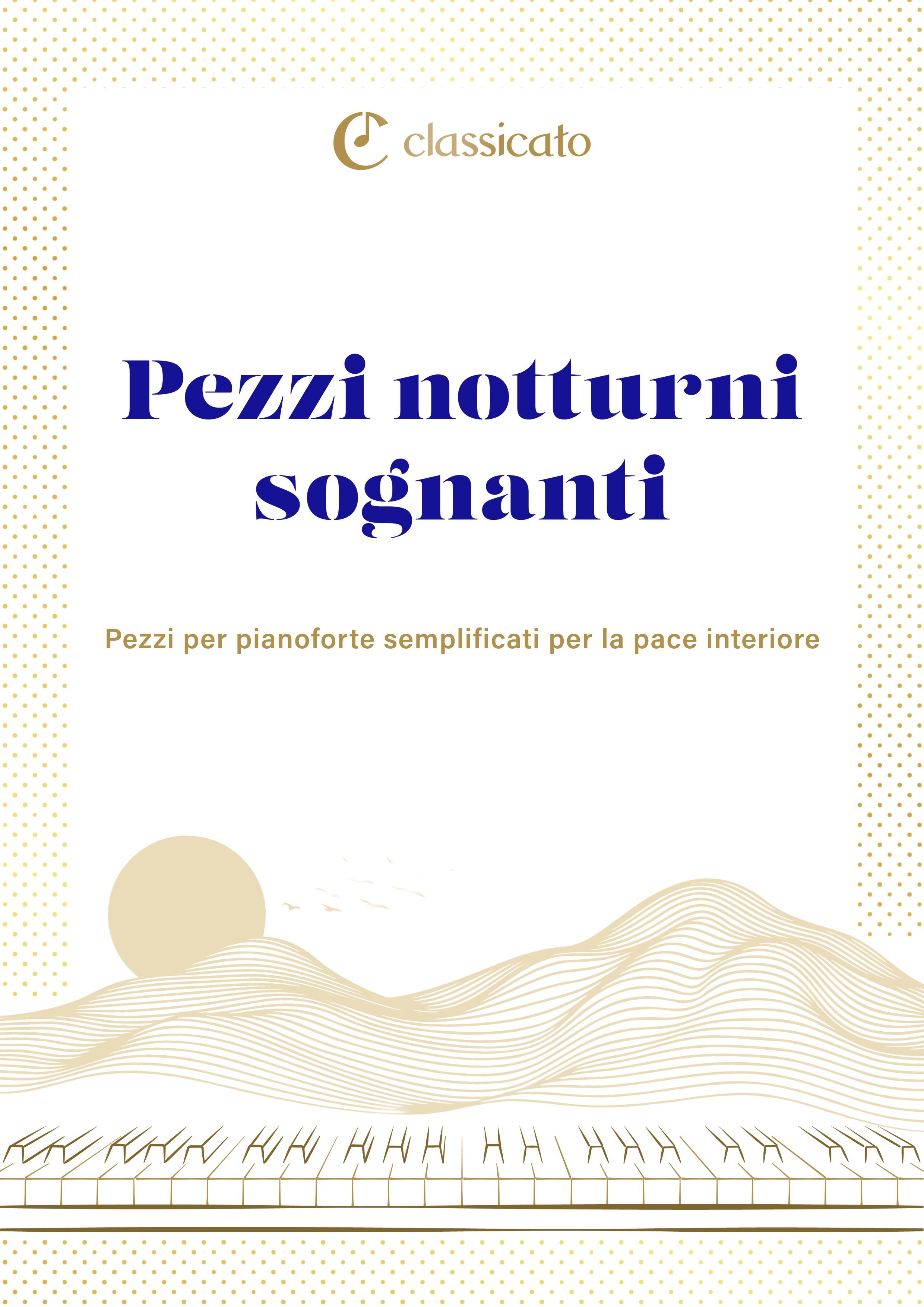 Alcune sere, l’anima non ha bisogno di capolavori esigenti - solo di musica che la accarezzi come una dolce luce di luna. Questa raccolta offre esattamente questo: cinque dei brani notturni più sognanti, accuratamente semplificati per principianti avanzati e per chi riprende il pianoforte. La Sonata al chiaro di luna di Beethoven scivola dolcemente nel buio, il Notturno op. 9 n. 2 di Chopin sussurra di desiderio e tenerezza, Clair de lune di Debussy brilla come luce argentata su acqua immobile, la Ninna nanna di Brahms ti culla dolcemente verso il sonno e Sognare ad occhi aperti di Schumann ti avvolge nel calore dei giorni d’infanzia passati. Ogni brano è distillato in poche pagine: solo la melodia pura e armonie morbide, senza peso inutile. Note grandi e chiare - sonore e fedeli allo spirito originale. Basta sedersi, suonare, chiudere gli occhi e dimenticare il mondo. La musica perfetta per notti silenziose quando si cerca conforto e calma profonda.