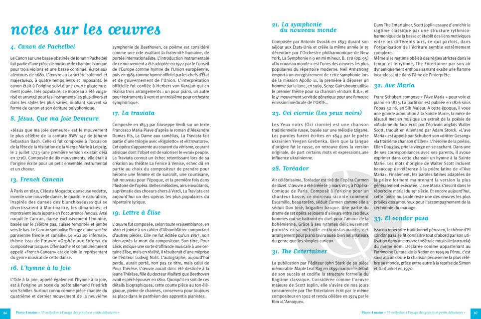 Das für Anfänger zugängliche Repertoire für Vierhändiges Klavier ist recht klein. Das Klavierschreiben in diesem Genre muss eine schwache Klaviertechnik und noch zu erlernende Notenkenntnisse berücksichtigen, ohne dass all dies die musikalische Wirkung beeinträchtigt.