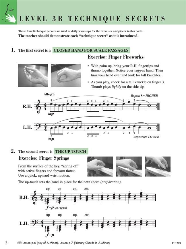 Im Level 3B Technique & Artistry Book lernen die Schüler vier effektive Technik-Geheimnisse, die ihnen helfen, flüssiges Spiel für das Repertoire der frühen Mittelstufe zu entwickeln. Neue Etüden von Bertini, Beyer und Czerny werden verwendet, um die Geheimnisse zu wiederholen und anzuwenden, was zu Artistry Magic-Stücken führt, die für Auftritte geeignet sind.