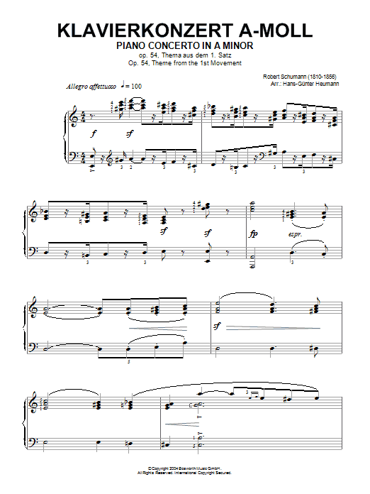 Piano Concerto In A Minor, Op.54, theme from the First Movement