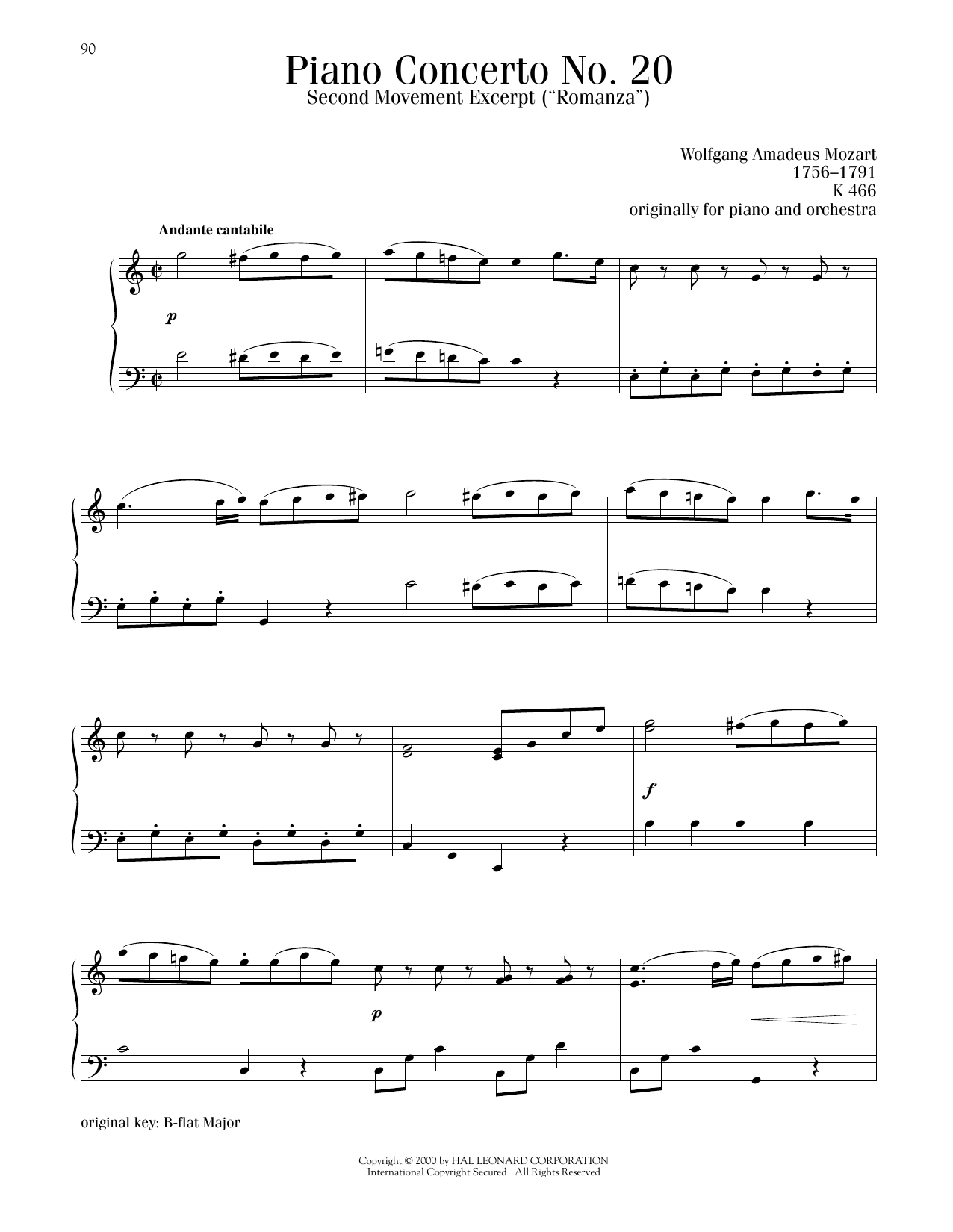 Piano Concerto No. 20, Second Movement