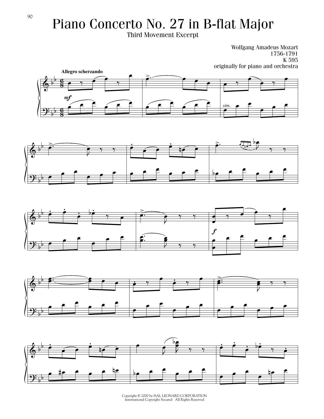 Piano Concerto No. 27, Third Movement Excerpt