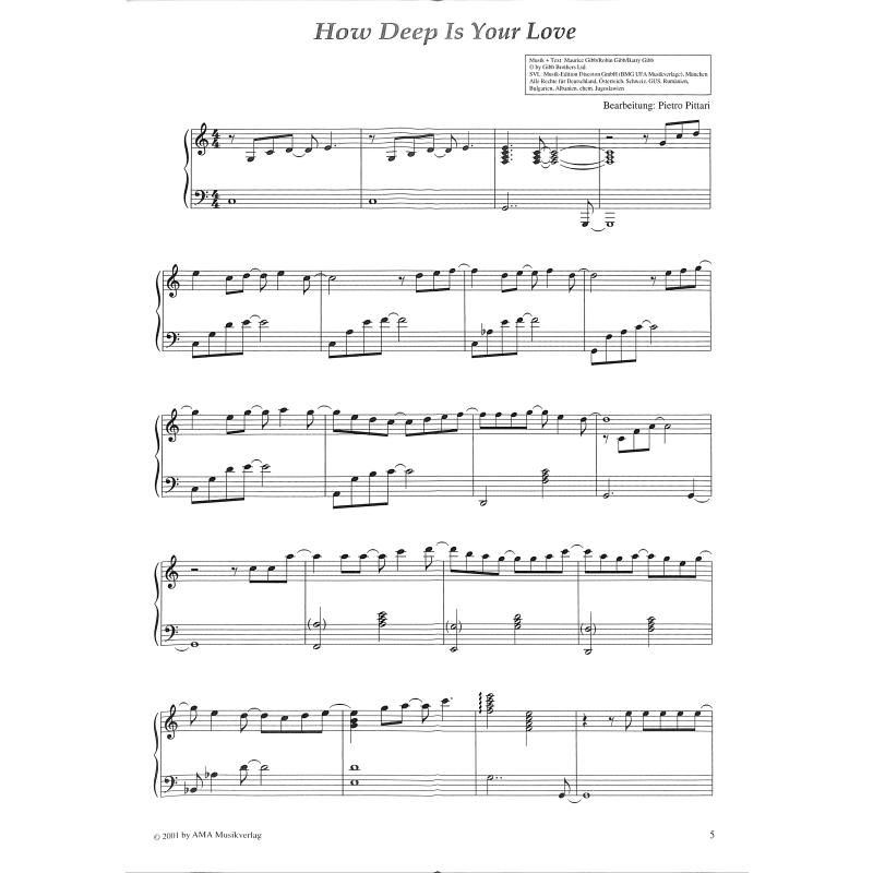 20 mittelschwer arrangierte Balladen - bekannte Songs und Eigenkompositionen. Bei dieser Sammlung handelt es sich um Arrangements bekannter Stücke, wie: - How Deep Is Your Love, - Night And Day, - Run To You, - That's What Friends Are For, - Killing Me Softly, - When A Man Loves A Woman, - Scarborough Fair, - My Funny Valentine, - Song For Guy, - One Moment In Time, sowie um Eigenkompositionen von Pietro Pittari, die ein spezifisches Gefühl für Klavier zu vermitteln versuchen: ein Piano Feeling. Bei den Bearbeitungen übernimmt das Klavier nicht die Aufgabe, die Originalbesetzung zu reduzieren, sondern es werden die Möglichkeiten dieses Instrumentes eingesetzt, um etwas Neues zu schaffen: ein Stück, das dem Original zwar treu ist, ihm jedoch durch die Verwendung verschiedener Klavierlagen und durch alternative Harmonien und Begleitfiguren eine neue Stimmung verleiht.