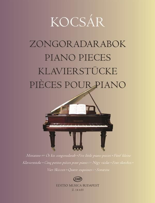 Der Band beinhaltet die ersten Gehversuche von Miklos Kocsar (*1933). Es mag uns überraschend vorkommen, dass die Stücke überhaupt nicht die Stilmerkmale aufweisen, von denen die Tonkunst in Ungarn Mitte der 1950er Jahre geprägt war. Diese proportional geformten Miniaturen spiegeln die vielfältigen Interessen des Komponisten wider: Die schlüssigen tonalen Verhältnisse, die freie Zwölftönigkeit oder sogar die Anwendung der Dodekaphonie ist ebenso charakteristisch für sie, dennoch ist ihre musikalische Sprache grundsätzlich ungarisch. Die mehr oder weniger kurzen Charakterstücke bieten den Klavierschüler von der höheren Klassen der Musikschulen bis zur Mittelstufe hin geeignetes Spielmaterial.