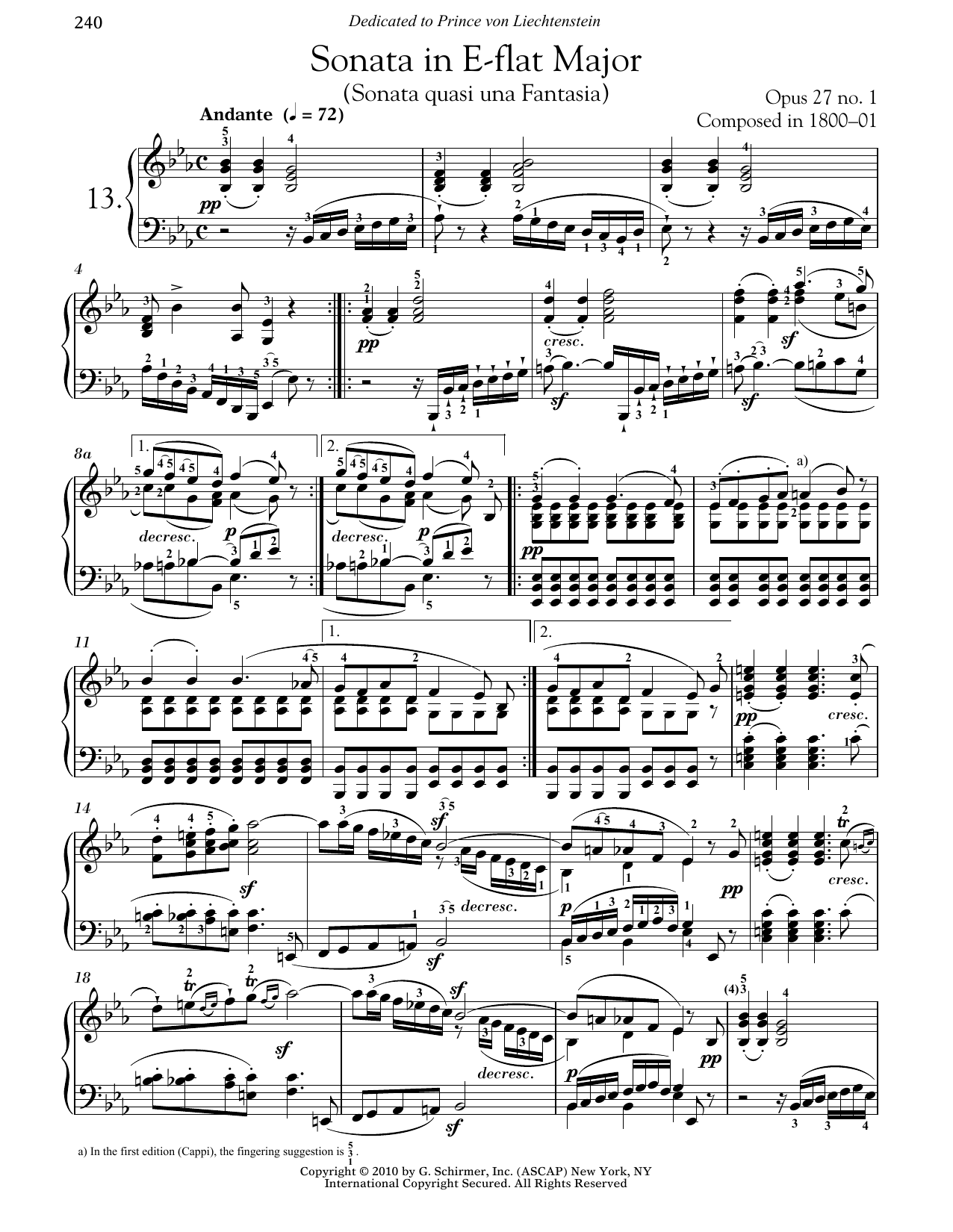 Piano Sonata No. 13 In E-flat Major, Op. 27, No. 1