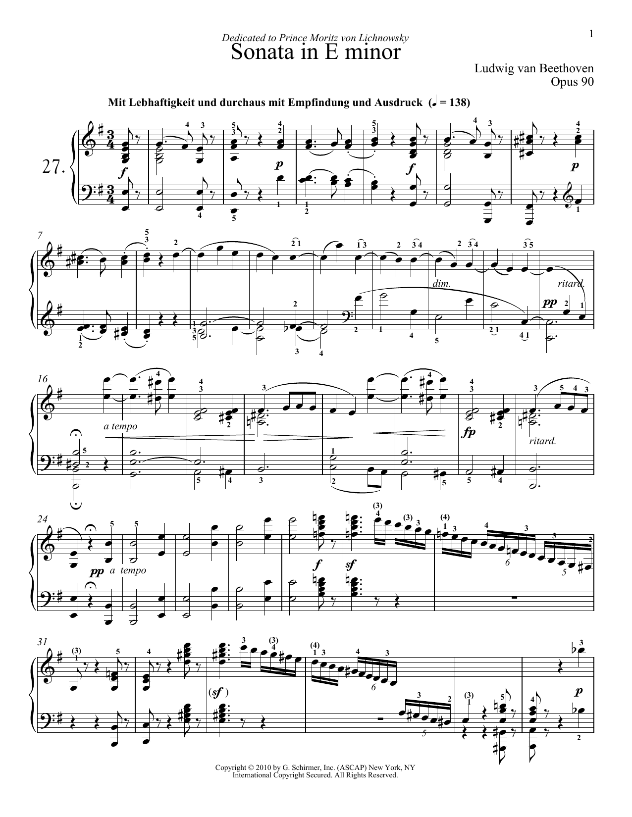Piano Sonata No. 27 In E Minor, Op. 90