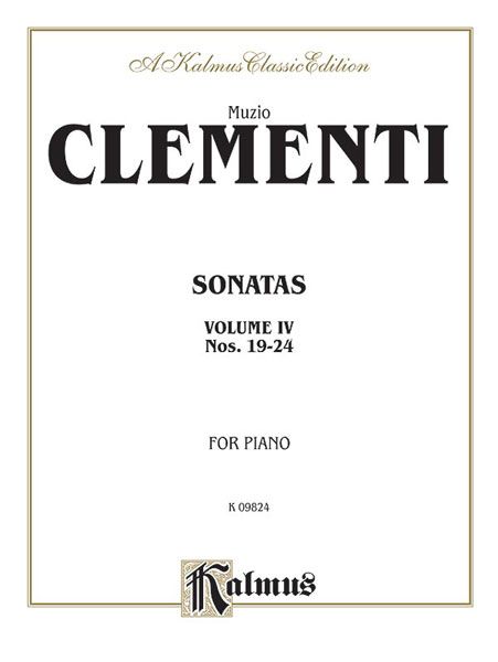 Muzio Clementi (1752--1832) was a famed composer, pianist, pedagogue, conductor, music publisher, editor, and piano manufacturer. Although born in Italy, he spent most of his life in England. In his time, he was known as "the father of the pianoforte," "father of modern piano technique", and "father of Romantic pianistic virtuosity." This is Volume 4 of Clementi's Sonatas and includes: Sonata No. 19 in E-flat major * Sonata No. 20 in G minor * Sonata No. 21 in E-flat major * Sonata No. 22 in C major * Sonata No. 23 in A major * Sonata No. 24 in C major.