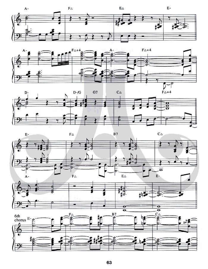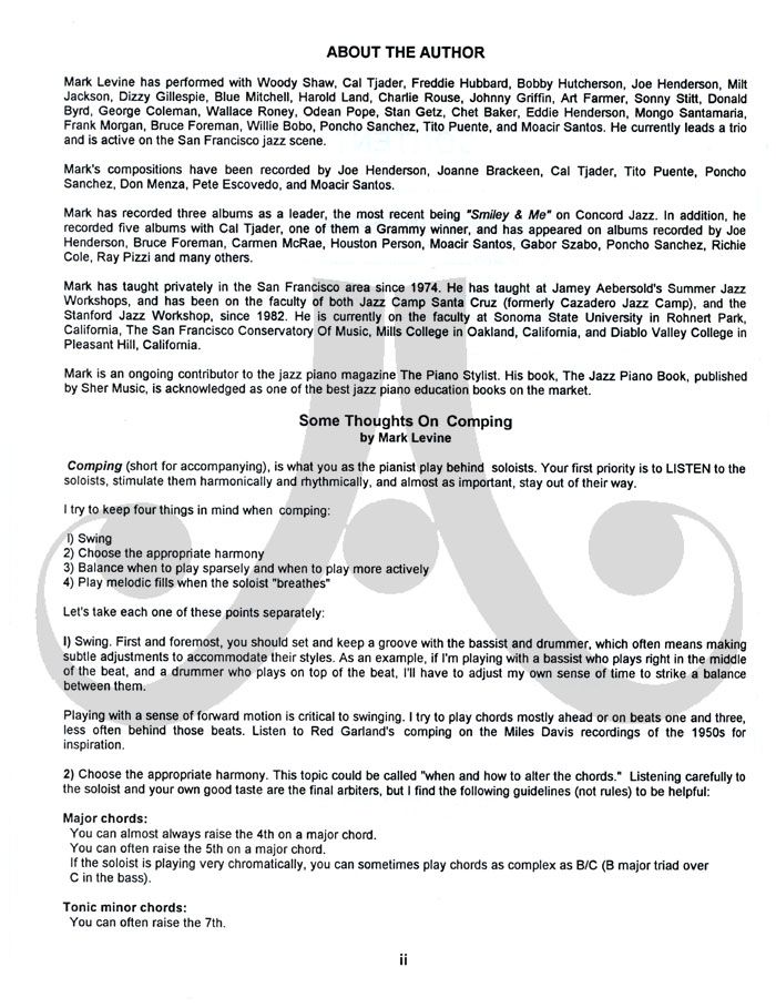 Pianists: First, listen closely to the pianist on the respective Play-A-Long recording (sold separately). Next, reading from the book, play along with him, imitating his style. Finally, TURN HIM OFF (using the special stereo separation on all of our CDs) and play along by yourself with the bass and drums. With the techniques learned, you'll soon be improvising your own accompaniment!
