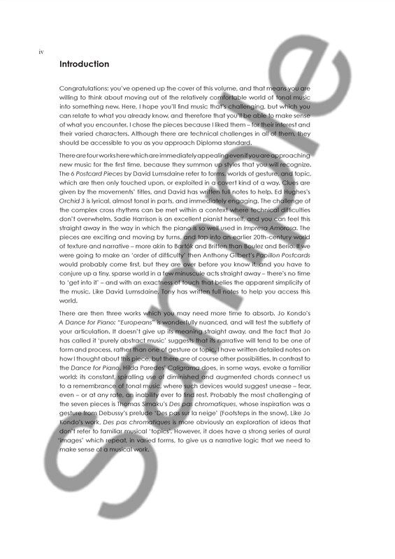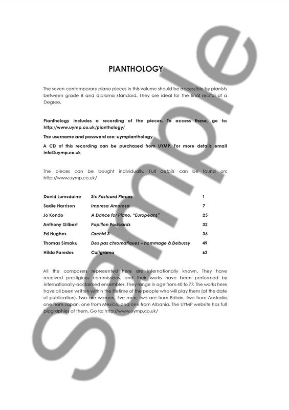 Pianthology is a new collection of seven contemporary Piano works by living composers which includes a recording of each of the works performed by Nicky Losseff, the volume's editor. Nicky Losseff, who combines a Senior Lectureship at the University of York with an active career as a concert pianist, has written extensive performance and analysis notes on all of the works, giving helpful suggestions about the study and performance os each piece in turn. The anthology is aimed at university and conservatiore level Piano students, but will serve as an excellent introduction to new music for the Piano for any dedicated player looking to broaden their range.