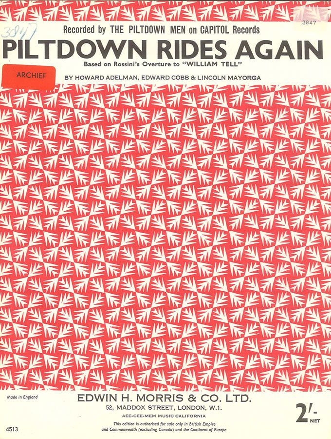 Piltdown Rides Again, based on Rossini's Overture To William Tell, written by Ed Cobb, Howard Adelman and Lincoln Mayorga, as performed by The Piltdown Men, arranged by Chris Langdon for piano solo with guitar chords.