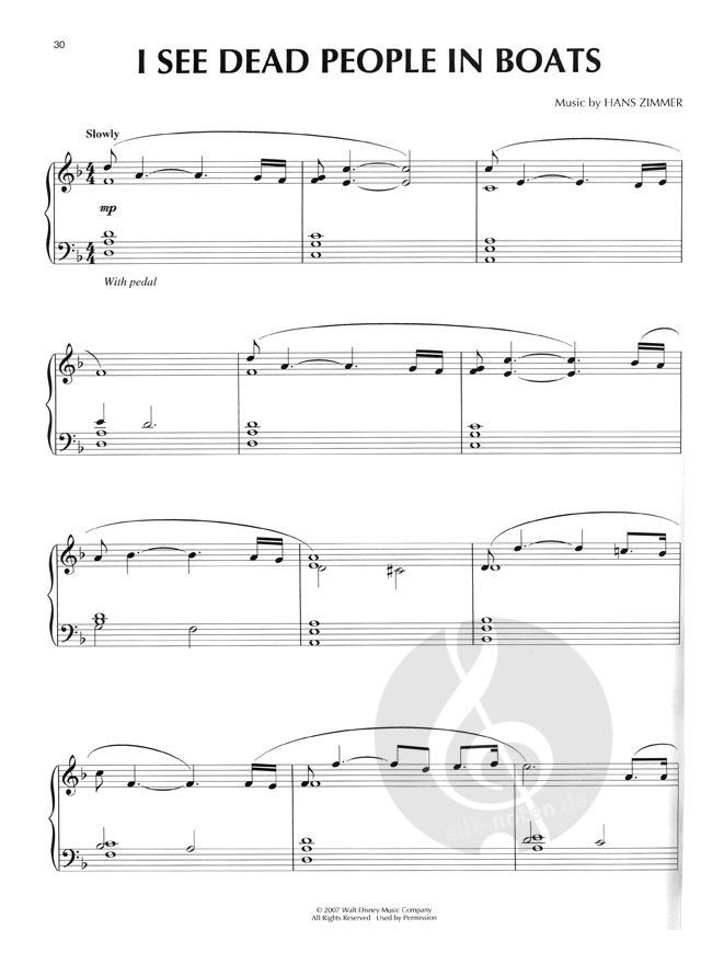 8 piano solo arrangements from the swashbuckling, dynamic Hans Zimmer soundtrack to this Disney blockbuster.