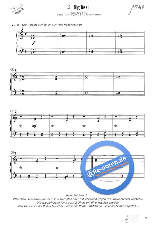 33 popsoundige Originalkompositionen für 2 Spieler an einem Klavier von sehr leicht bis etwas schwieriger.