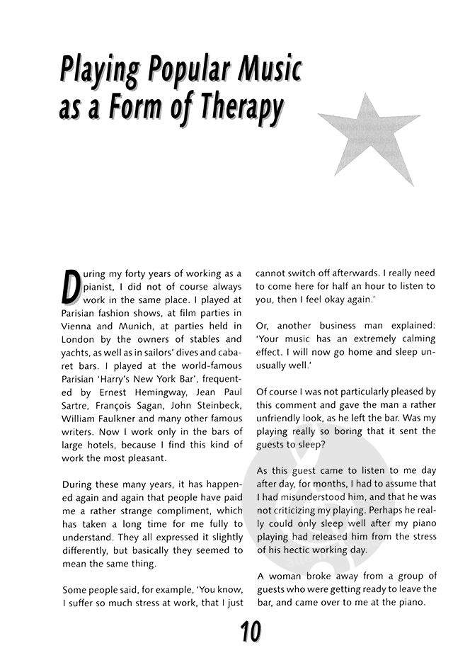 Mit diesem Buch halten Sie nun endlich ein einfaches und absolut neues System in den Händen, mit dem sich Ihr geheimer Wunsch, frei und ohne Noten spielen zu können wie der Barpianist, auf die angenehmste und wunderbarste Weise erfüllt. Eines Tages wird jeder, der ein Piano, ein Keyboard oder einen Synthesizer besitzt, dieses Buch zu Hause haben.