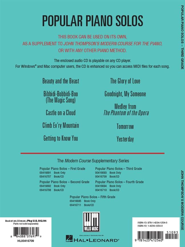 10 songs that can be used on their own, or as a supplement to John Thompson's Modern Course for the Piano or any other method.
