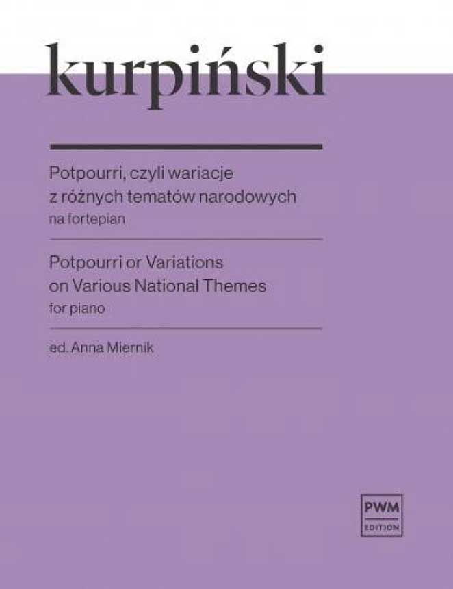 Potpourri oder Variationen über verschiedene nationale Themen wurde für den 7-jährigen Józef Krogulski komponiert, einen hervorragenden polnischen Pianisten, der im Alter von 27 Jahren vorzeitig starb. Das Werk wurde zum ersten Mal 1813 und dann 1825 in Warschau in der Druckerei von Antoni Brzezina veröffentlicht. Unter dem französischen Wort Potpourri versteht man ein leichtes musikalisches Werk, das aus Motiven besteht, die aus verschiedenen Quellen stammen. Karol Kurpiński, der Komponist des späten Klassizismus und der frühen Romantik, verband klassische Formstrukturen und Ausdrucksmittel mit Elementen der polnischen Musikfolklore. In der Kunst von Kurpiński dominieren die Tanzformen (hauptsächlich Polonaisen). Der Komponist war bestrebt, die nationalen Merkmale der polnischen Musik des frühen 19. Jahrhunderts in seinem Werk zu bewahren. Ihm gelang es, einfache, schöne und eingängige Melodien zu komponieren, die sich auf Volkslieder bezogen. Es sollte uns nicht überraschen, dass nationale Melodien auch in den Klavierstücken des Künstlers zu finden sind. Neben seiner Tätigkeit als Komponist war Kurpiński auch ein beliebter Dirigent, er leitete fast alle Konzerte in der Hauptstadt, so auch die Uraufführung des Klavierkonzerts in f-Moll von Fryderyk Chopin am 17. März 1830 mit dem Komponisten selbst als Solist. In seinem Potpourri schöpft Kurpiński fast alle Möglichkeiten des Klaviers in Bezug auf Virtuosität aus. Es gibt verschiedene Passagen sowie Oktaven, Akkorde, Tremolo, Sekunden und Terzen, chromatische Kadenzen, punktierte Rhythmen, Appoggiatura, Arpeggio, Sequenzen von doppelten Tritonen, versteckte Melodie in Sechzehnteltriolen. Wir wollen gar nicht erst versuchen zu erraten, wie begabt und geschickt der siebenjährige Józef Krogulski sein musste, wenn Kurpińskis Werk für viele professionelle Pianisten eine Herausforderung sein konnte. Nach dem einleitenden Poco adagio, das sogleich mit virtuosen Elementen gefüllt ist, folgt die Dumka. Die Bezüge zu diesem ukrainischen mehrstrophigen Lied in Form einer Ballade mit rührseligem Charakter, in dem oft das Bedauern über den Verlust einer Person oder die Sehnsucht nach einem Ort oder einem Ereignis zum Ausdruck kommt, finden sich in der Musik vieler Komponisten des 19. Jahrhunderts zu finden. So zum Beispiel bei Fryderyk Chopin in dem Lied Dwojaki koniec für Gesang und Klavier, op. 74 Nr. 11 (1845). In Kurpińskis Stück führt die ruhig entwickelte Melodie der Dumka in den variationsartigen Fragmenten zum Höhepunkt und wird dann zu Alla polacca. Im Potpourri ist, ähnlich wie in anderen Werken des Komponisten, seine Vorliebe für Polonäsen spürbar: Alla polacca ist das längste Fragment des Werkes, in dem Kurpiński seine melodische Schaffenskraft zeigt. Nach einer Polonaise folgt eine kurze Krakowiak, die den Hörer auf eine virtuose Mazur vorbereitet, die das Werk dank zahlreicher Passagen in D-Dur, die fast die gesamte Tastatur einnehmen, triumphal beendet.
