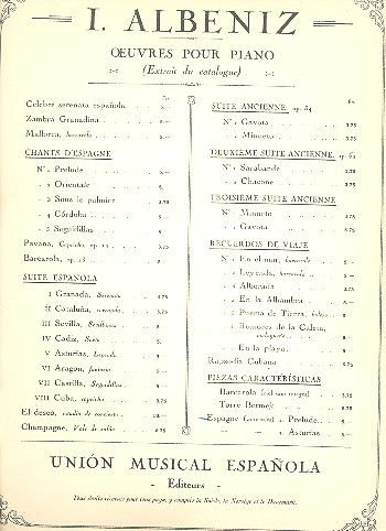 Prelude Nr.1 D'espagne Souvenirs Piano