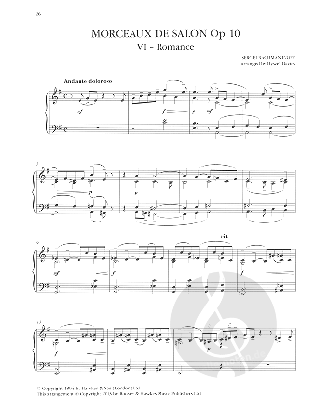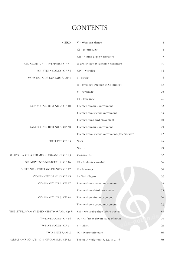 Diese exquisite Sammlung präsentiert 29 der beliebtesten Werke Rachmaninows in mittelschweren Bearbeitungen. Enthalten sind u. a. Themen aus Klavierkompositionen wie den Klavierkonzerten Nr. 2 und 3, den Präludien oder der Rhapsodie über ein Thema von Paganini. Darüber hinaus findet man aber auch Bearbeitungen von Vokal-, Kammermusik- und Orchesterwerken wie Vokalise, Vesper, Aleko oder Themen aus den Symphonien Nr. 2 und 3. Eine unverzichtbare Anthologie zu einem der wichtigsten Komponisten des 20. Jahrhunderts!