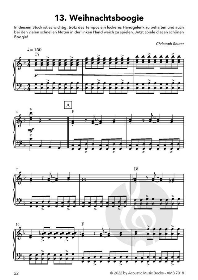 Alle Jahre wieder… ist es soweit: Weihnachten steht ganz plötzlich vor der Tür! - Du hattest dir vorgenommen, dieses Jahr früher als sonst mit dem Üben anzufangen, damit das Weihnachtsliederspielen diesmal ganz einfach von der Hand geht. Da habe ich etwas für dich: Mit diesem Klavierbuch kannst du schon im Sommer beginnen, denn neben den klassischen Versionen der Weihnachtslieder habe ich einigen zusätzlich ein Update verpasst. Herausgekommen sind gut spiel-bare Arrangements von meinen Lieblingsweihnachtsliedern auch als Pop-, Reggae-, Boogie- oder Balladenversion. Mit weniger Üben mehr Spaß zu haben, ist das Motto. Und an Weihnachten spielst du dann die Klassiker. Aber jetzt bist du dran, also: Ran an die Tasten! Und: Fröhliche Weihnachten! - Christoph Reuter