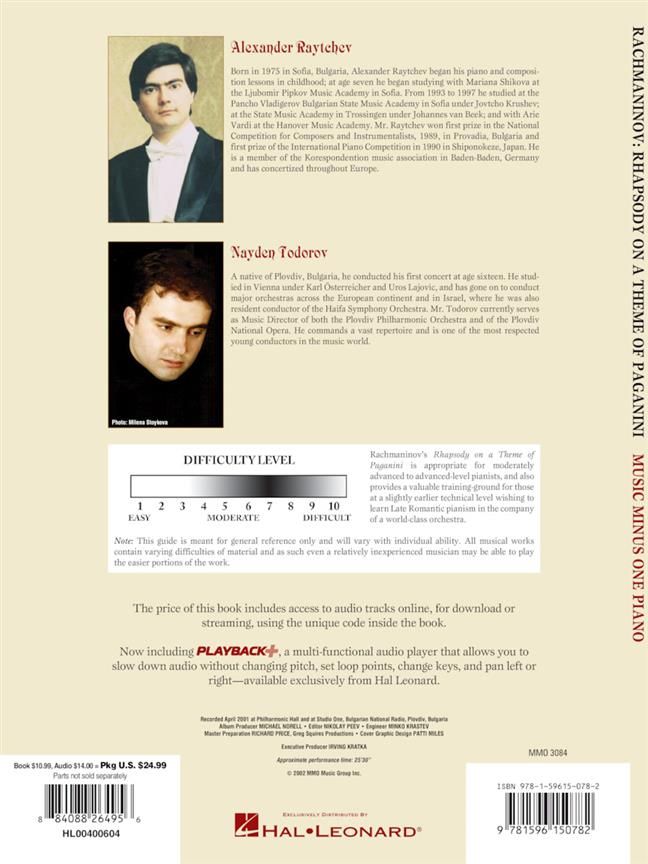 Accompaniment: Plovdiv Philharmonic Orchestra - Composed in 1934, this series of variations on one of Paganini's themes was an instant hit. The 18th variation is a universally known melody to this day, being heard on film and television soundtracks, in recordings, and in concert halls everywhere. A many ways bridge between late 19th-century music and the modern age, it is a vital addition to every serious pianist's repertoire.