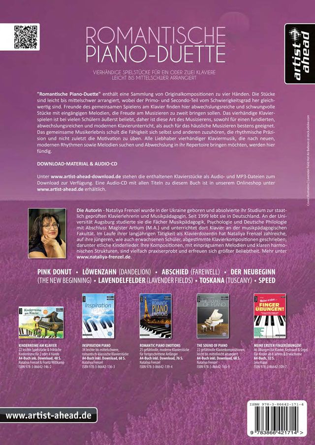 Unter artist-ahead-download.de stehen die enthaltenen Klavierstücke als Audio- und MP3-Dateien zum Download zur Verfügung. Eine Audio-CD mit allen Titeln zu diesem Buch ist in unserem Onlineshop unter artist-ahead.de erhältlich.