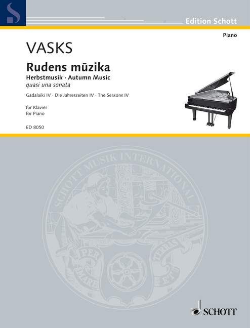 Diese Herbstmusik lässt dem Interpreten innerhalb der ausnotierten Musik große Freiheiten. Sie stellt sowohl hohe Anforderungen an die Technik als auch an die Gestaltungsfähigkeit des Pianisten. Das Klangspektrum reicht vom zarten pianissimo bis zu eruptiven Akkordballungen. So entstehen für den Zuhörer Klangbilder von herbstlichen Naturlandschaften. Das Stück ist Teil des Zyklus Die Jahreszeiten, einer Sammlung für Klavier, die mit den bereits vorhandenen Zala ainava (Grüne Landschaft), Balta ainava (Weisse Landschaft) und Pavasara muzika (Frühlingsmusik) vervollständigt wird. Hier wie in allen Werken Vasks spielt die Natur in all ihren Erscheinungsformen und die Beziehung des Menschen zu ihr eine große Rolle.