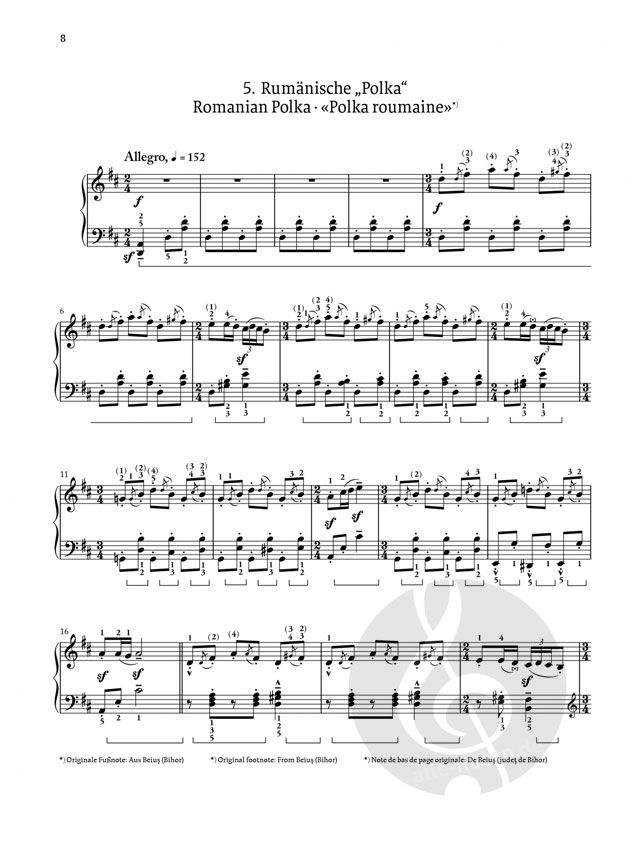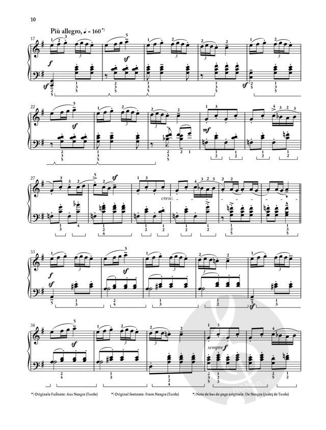 Die 1915 entstandenen Rumänischen Volkstänze gehören zu Bartóks bekanntesten Werken - und dies in vielfältiger Gestalt, denn neben verschiedenen Ausgaben der Klavierfassung und einer späteren Orchestrierung von Bartók selbst gibt es auch Arrangements von Zeitgenossen, die mit Einverständnis des Komponisten entstanden. Man kann heute sogar auf Einspielungen der Tänze durch Bartók selbst zurückgreifen; diese dokumentieren mit variierenden, durch Oktavverdopplungen angereicherten Wiederholungen quasi die 'Konzertfassung' der Tänze. Bartók-Forscher László Somfai bringt Ordnung in diese reiche Überlieferung und präsentiert in der Henle-Urtextausgabe die für den Musiker wesentlichen Varianten direkt im Notentext.