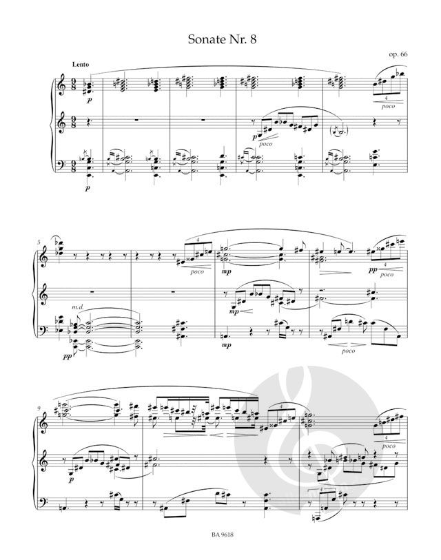 In den Klaviersonaten spiegelt sich Skrjabins künstlerische Entwicklung wie in kaum einer anderen Gattung. Die in der vorliegenden Edition versammelten Sonaten Nr. 6, 7 und 8 komponierte Skrjabin in der Zeit von 1911 und 1913, teilweise zeitgleich zu den späten Sonaten Nr. 9 und 10.
