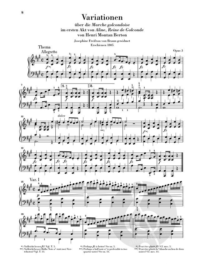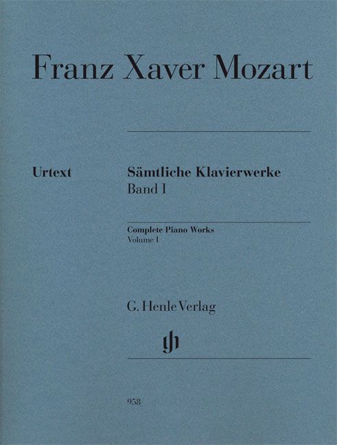 Franz Xaver Mozart war der jüngste Sohn W. A. Mozarts. Von der Mutter von Anfang an für eine Musikerlaufbahn bestimmt, trat er in die Fußstapfen seines Vaters, konnte sich aber zeit seines Lebens nicht aus dessen Schatten befreien. Unsere zweibändige Edition (Band II, HN959) veröffentlicht erstmals seine sämtlichen Werke für Klavier zu zwei und drei Händen. Band I enthält neun zum Teil recht umfangreiche Variationszyklen (einen davon als Erstveröffentlichung), eine groß angelegte Fantasie in A-dur (ebenfalls als Erstveröffentlichung) und die viersätzige Sonate op. 10. Den originellen Abschluss des Bandes bildet ein Variationszyklus zu drei Händen.