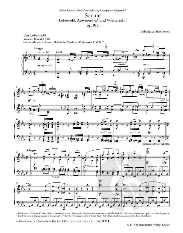 Die Bände enthalten jeweils ein thematisches Inhaltsverzeichnis mit den Incipits aller Sonaten. Ein schnelles Auffinden der Werke und einzelner Sätze ist durch lebende Kolumnentitel mit Angabe von Opus- und Satzzahl leicht möglich. Im Vorwort zu Band I (engl./dt.) werden zentrale editorische Probleme von Beethovens Notationsweise sowie aufführungspraktische Fragen erläutert und ergänzt durch Faksimileseiten. Das unverzichtbare Standardwerk auf dem neuesten Stand der Beethoven-Forschung!