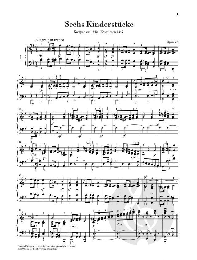 Im Sommerurlaub 1842 schrieb Mendelssohn je vier Klavierminiaturen in die Alben zweier Kinder aus seiner Verwandtschaft nieder. Jahre später überarbeitete er die Stücke. Dabei strich er zwei, stellte die verbleibenden Stücke in eine neue Reihenfolge und veröffentlichte sie unter dem Titel 'Kinderstücke'. Kurz vor dem Erscheinen der Ausgabe im Jahre 1848 starb Mendelssohn. Obwohl postum, ist die Erstausgabe von Mendelssohn selbst initiiert und somit Hauptquelle unserer Ausgabe. Im Anhang geben wir die beiden Stücke wieder, die Mendelssohn nicht in sein Opus 72 aufgenommen hatte.