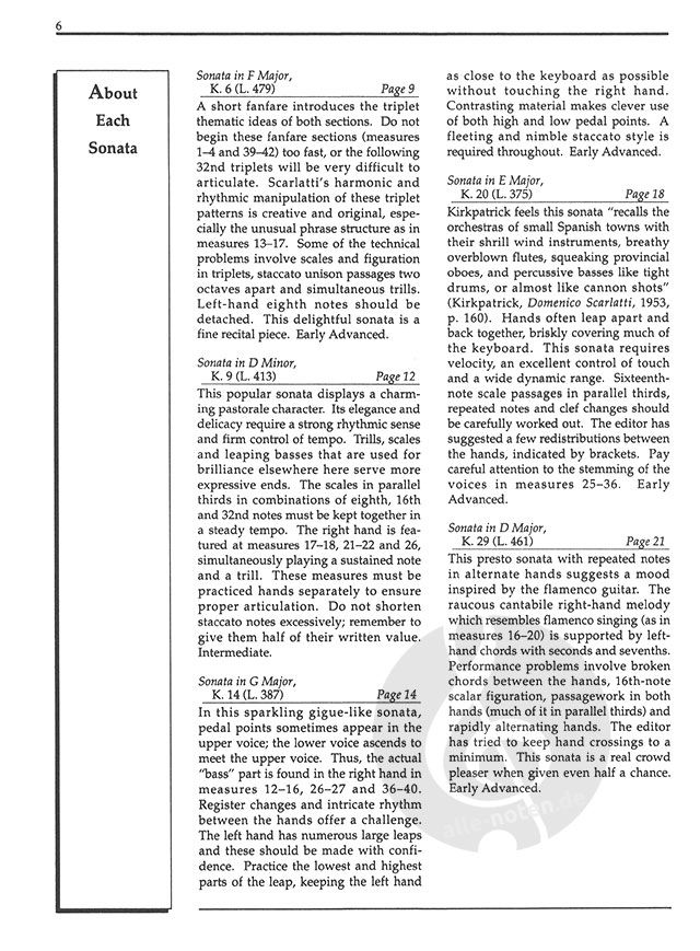 Compiled for intermediate to early-advanced pianists, this 64-page edition includes biographical information on Scarlatti, performance notes by the editor and composer, explanations of ornamentations, and a discussion on the influence of Spanish folk music on Scarlatti's works.