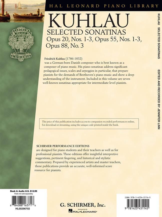 Included in this volume are seven well-known sonatinas appropriate for intermediate level pianists. Contents: Sonatina in C Major, Op. 20, No. 1 - Sonatina in G Major, Op. 20, No. 2 - Sonatina in F Major, Op. 20, No. 3 - Sonatina in C Major, Op. 55, No. 1 - Sonatina in G Major, Op. 55, No. 2 - Sonatina in C Major, Op. 55, No. 3 - Sonatina in A Minor, Op. 88, No. 3.
