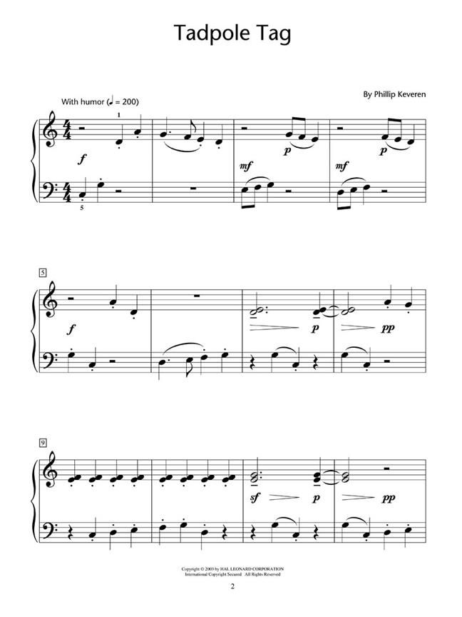 A sequel to Phillip Keveren's first collection of original solos for the late-elementary student, Shifty-Eyed Blues provides more hours of pianistic fun with lively, imaginative piano solos sure to enliven lessons and recitals! Each piece remains for the most part within simple 5-finger positions, shifting around the keyboard in a clear and easy manner. Evocative titles encourage interpretations that have a wide range of emotional and imaginative character. 5 solos: Tadpole Tag - Shifty-Eyed Blues - Prayer - Roundup! - Rock! Goes the Weasel. Late Elementary (HLSPL 3/4); Keys: C and F Major; Reading Range: Full staff and ledger-line notes; accidentals; limited use of syncopation; Varied tempos. 2 - 4 page solos.