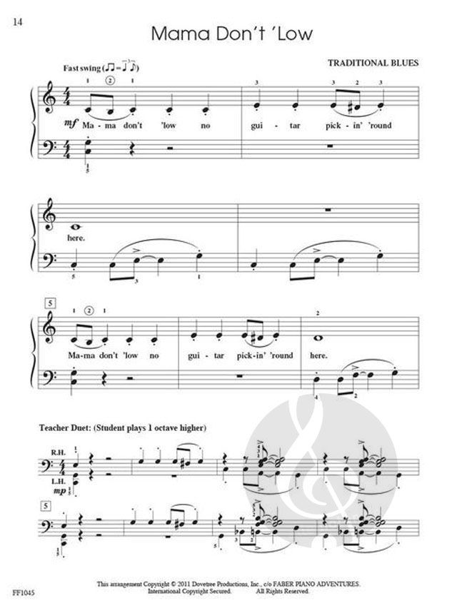 ShowTimeö Piano Jazz & Blues is a spirited collection of jazz and blues pieces arranged for the Level 2A piano student. The student will enjoy creating the sounds of jazz and blues while improving reading and rhythmic skills. The book offers a pleasing variety of sounds, ranging from soulful blues to jazz originals, including: Blue Moon - Bye, Bye Blackbird - The Rainbow Connection - and more.