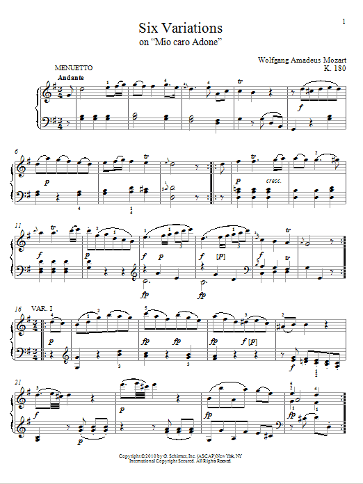 Six Variations on Mio Caro Adone, K. 180